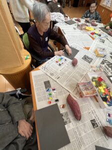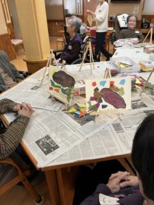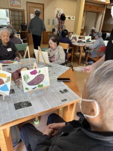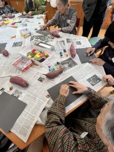 すごく楽しい2時間。お芋を目の前に思いどうりに色を重ねる。